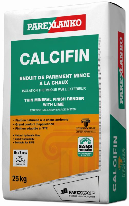 Calcifin is een dunlagige minerale gevelpleister op basis van luchtkalk, ontworpen voor de afwerking van buitengevelisolatiesystemen (BGI) binnen het PARISO-gamma en voor het afwerken van gevels van zowel nieuwbouw als bestaande gebouwen. De pleister heeft een fijne korrelstructuur en is beschikbaar in een palet van 24 kleuren.